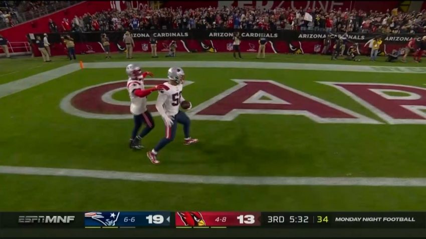 Raekwon McMillan scooped it up and ran 23 yards for the touchdown, giving the Patriots the go-ahead score in a 27-13 win on Monday night over the Arizona Cardinals, who lost starting Kyler Murray in the first quarter to a potentially serious knee injury.