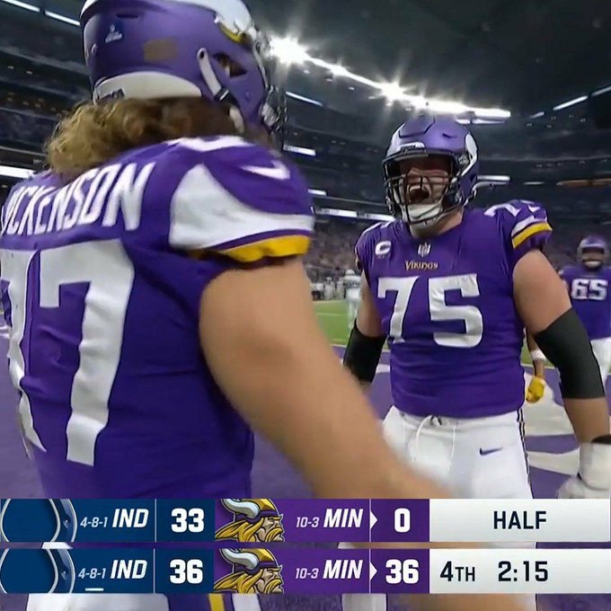 Saturday afternoon became the most unlikely division coronation in NFL history for the host Minnesota Vikings as they trailed 33-0 at halftime, the largest home halftime deficit in franchise history, against a scuffling Indianapolis Colts team that has now lost four in a row. The Colts dropped to 4-9-1 following Minnesota’s 39-36 historic comeback victory in overtime. Thanks to their 33-point comeback, the largest in a single game in NFL history, Minnesota locked down its first NFC North division title since 2017 and also its first playoff berth since 2019.
