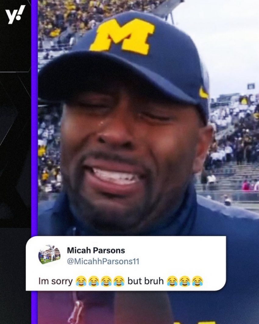 “We’re one. It made us stronger,” said Corum, who carried 26 times and left the game with a bloodied bridge of his nose. “Obviously, we wanted Coach Harbaugh to be here, but we did it for him today. We’ve been going through a lot lately, but it’s only brought us closer together.”