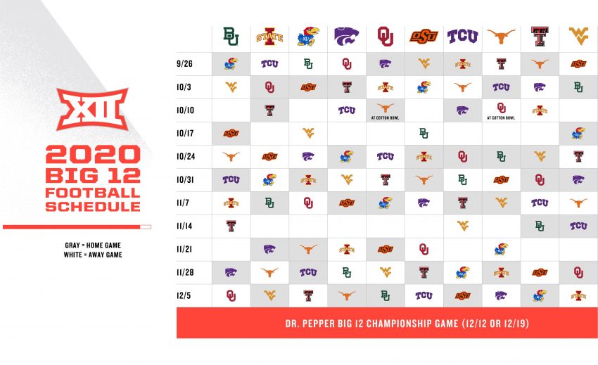 Here’s how the Big 12 has set up its 2020 football schedule: