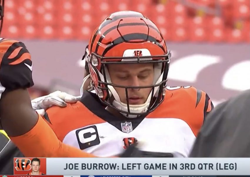 Cincinnati Bengals rookie QB Joe Burrow left Sunday’s game in the third quarter with a knee injury and the initial diagnosis is a torn ACL according to NFL Network Insider Ian Rapoport.