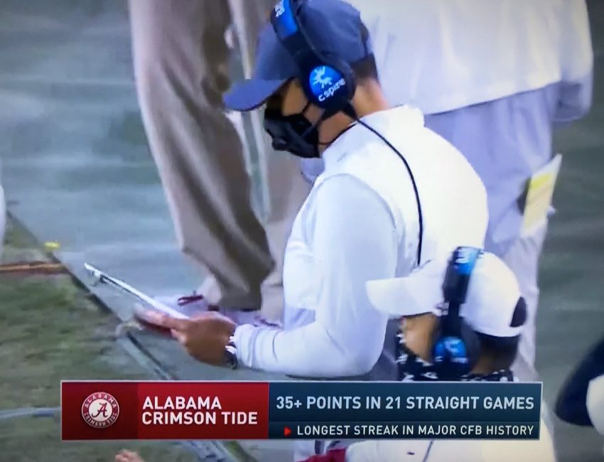 Coach Nick Saban was unable to lead the Crimson Tide on Saturday after receiving a positive COVID-19 diagnosis during the week. Offensive coordinator Steve Sarkisian stepped in as interim coach, but Saban watched along from home and was impressed with his team’s performance.