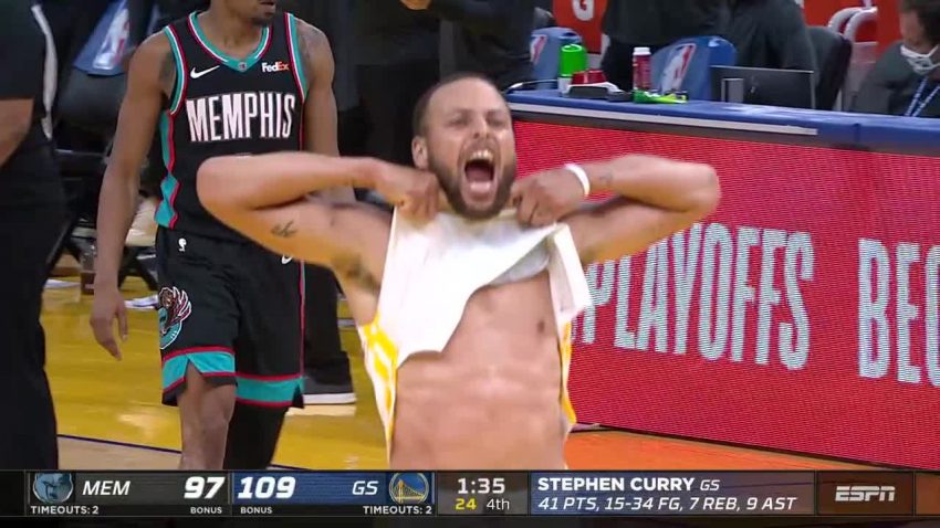Warriors Steph Curry clinched his second NBA scoring title during Sunday’s game against the Grizzlies with a floater in the first quarter. The bucket ensured that he will finish higher than Bradley Beal, who scored 25 points in the Washington Wizards’ regular-season finale earlier Sunday to finish with 31.3 points per game.