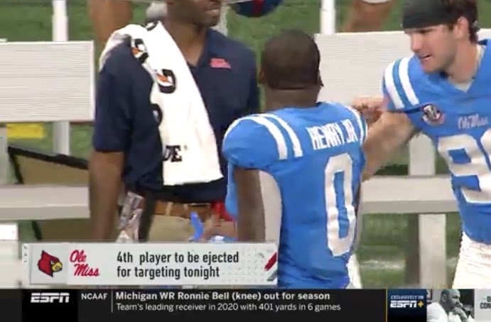The whistle you hear after your head hits your pillow tonight is the Ole Miss – Louisville refs penalizing you for targeting pic.twitter.com/U7s3QkhuII