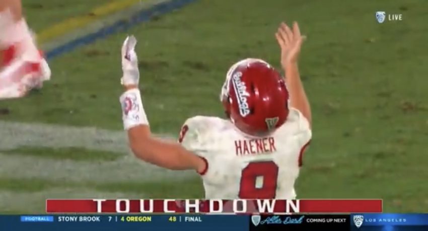 Fresno State quarterback Jake Haener turned in a performance for the ages on Saturday night, playing through an injury to lead the Bulldogs to a 40-37 upset at No. 13 UCLA. Haener threw both of his touchdown passes in the fourth quarter while playing in clear pain and collapsed on the field in celebration when the last-second Hail Mary pass from Bruins quarterback Dorian Thompson-Robinson’s fell to the turf to cement the outcome.