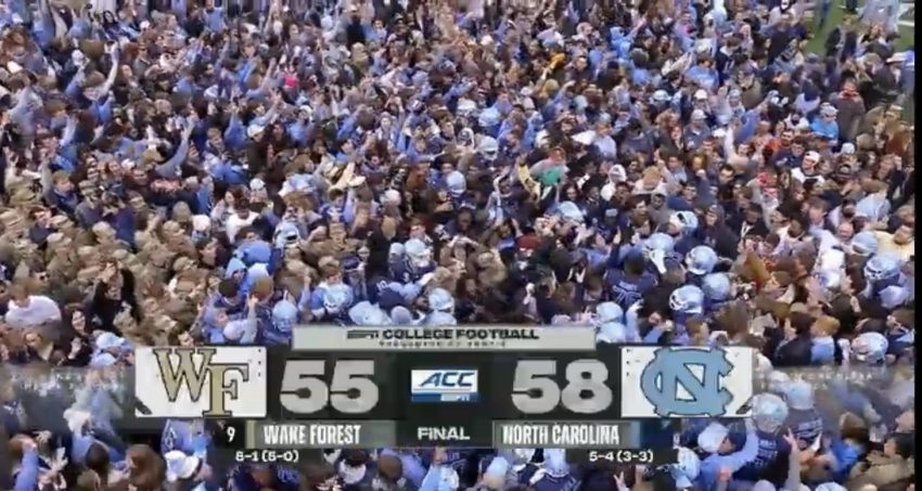 Chandler’s big day included a 50-yard breakaway run with 1:12 left. That was the final blow for the Tar Heels (5-4) as they rallied from a huge third-quarter deficit to beat the Demon Deacons (8-1, No. 9 CFP) for the second straight year, following a 21-point comeback last year by erasing a 45-27 deficit with 7:38 left in the third.