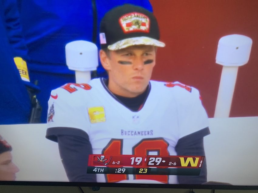 Tom Brady was intercepted twice as the Tampa Bay Buccaneers suffered a shock 29-19 defeat at the Washington Football Team.