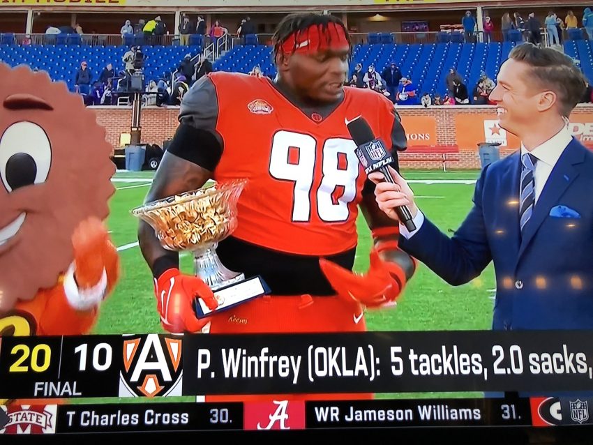 Perrion Winfrey didn’t exactly fly under the radar during the week, but he did get lost in the mix at times while names like Travis Jones, Logan Hall, Devonte Wyatt and Jermaine Johnson were well-deserved talking points. But Winfrey did his share of dominating one-on-one drills during practices, and he took that tenacity to the field Saturday at Hancock Whitney Stadium. He finished the day with two sacks and three tackles for loss and was just about unblockable every time he was on the field.