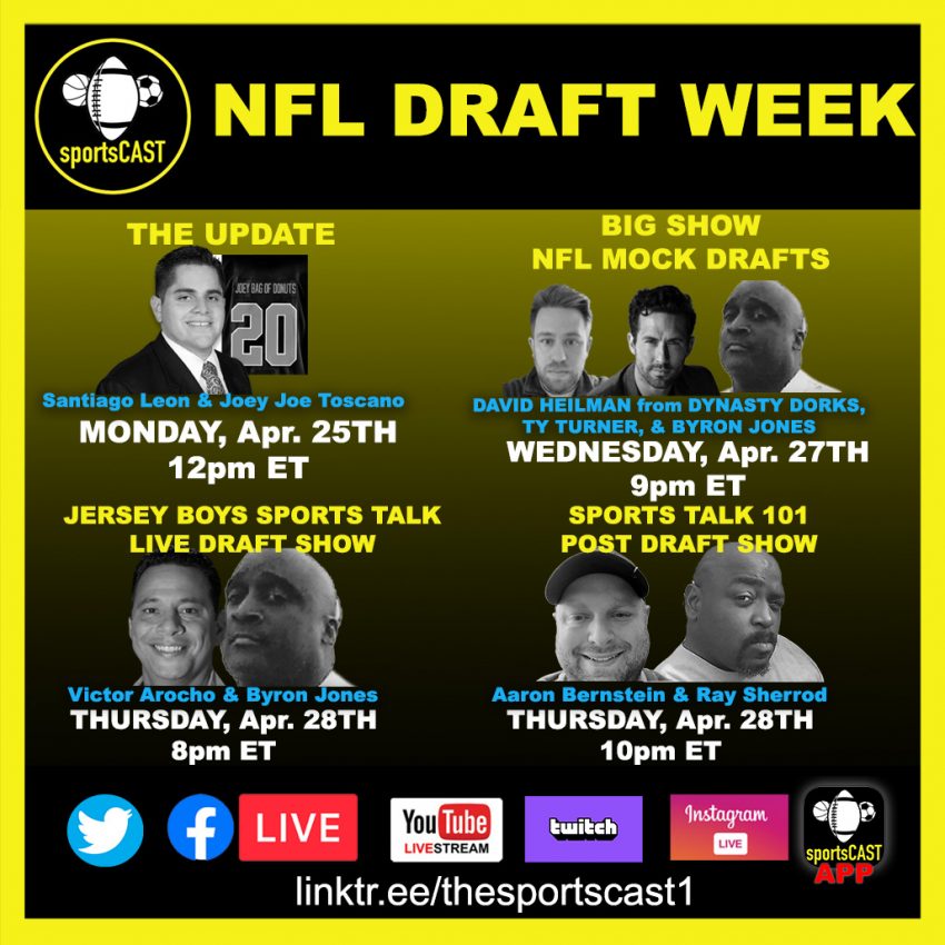 THEN the LIVE DRAFT show with the Jersey Boys Sports Talk on Thursday, April 28th at 8 pm ET