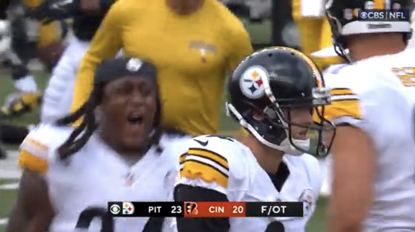 Fitzpatrick kept the Steelers alive by blocking Evan McPherson’s point-after try, sending the game to overtime.