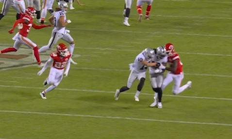 Carr gave it his all to mount a late comeback after the Raiders lost the lead, hitting Adams on a deep TD to pull within one point in the fourth quarter. But McDaniels opted to go for two rather than tie the game at 30, and the Chiefs defense held firm, stuffing an otherwise productive Josh Jacobs at the goal line. Mahomes, meanwhile, was money when targeting Kelce, who also set a team record for TD catches by a tight end.