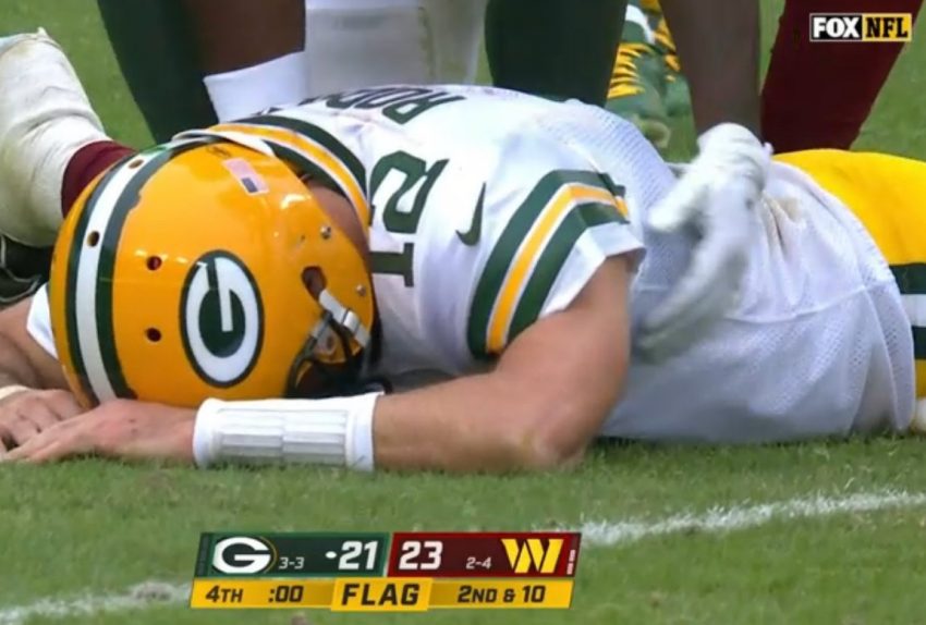 Aaron Rodgers after the last play of the Packers-Commanders game. pic.twitter.com/e9atAQ4LXE