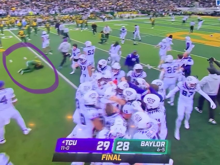 Baylor outplayed TCU for most of the game, finishing with 60 more total yards and rushing for 232 yards on 46 carries. The Bears held an eight-point lead with fewer than three minutes remaining, however, a pair of miraculous drives from TCU quarterback Max Duggan โ including a draw to convert on third-and-1 with less than a minute remaining โ made all the difference.