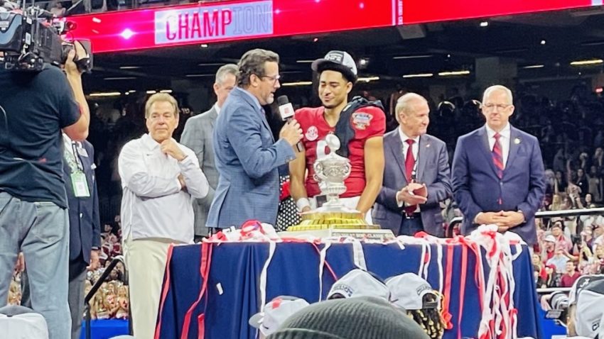 No. 5 Alabama used a monster third-quarter effort from quarterback Bryce Young to cruise past No. 9 Kansas State 45-20 in the Sugar Bowl. Young threw for 321 yards and five touchdowns β an Alabama program record in a bowl game β in what will likely be his final college football game as the Tide clinched a 12th straight season with at least 11 wins under Nick Saban.