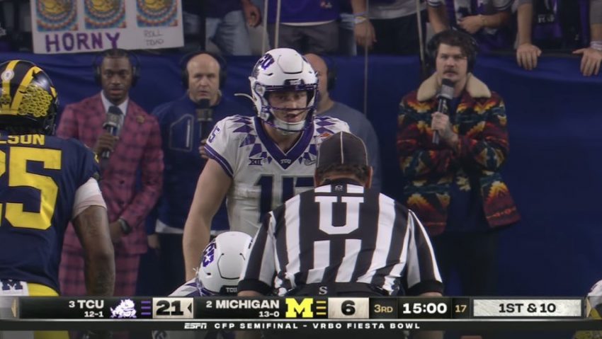 Max Duggan accounted for four touchdowns, TCU returned two interceptions for scores and the third-ranked Horned Frogs withstood a frenetic second-half surge by No. 2 Michigan to win the Fiesta Bowl 51-45 on Saturday night and advance to the College Football Playoff national championship.