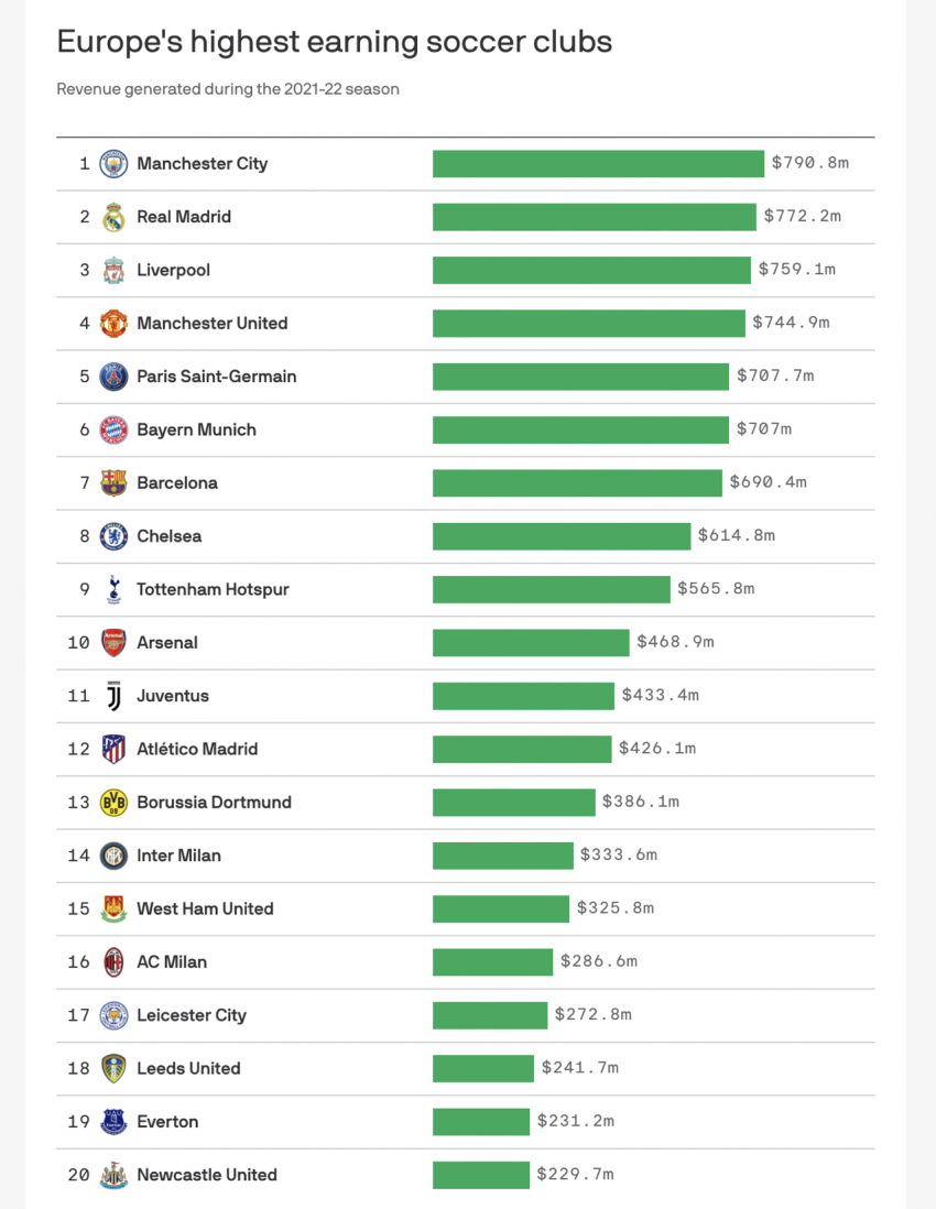 In a recent report from Deloitte, Manchester City was the highest-earning soccer club in Europe. Followed by Real Madrid, Liverpool and Manchester United.