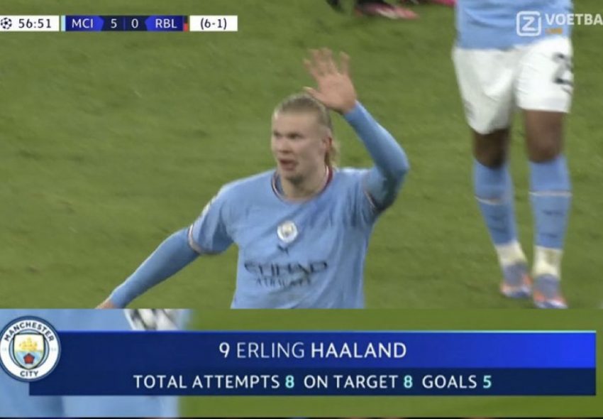Erling Haaland equalled a Champions League record with a five-goal haul to ease Manchester City into the quarter-finals at RB Leipzig’s expense as a 7-0 win for the English champions secured an 8-1 aggregate victory on Tuesday.