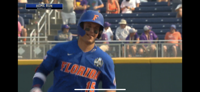 The Gators hit six home runs on a windy day at Charles Schwab Field and pounded LSU pitching for a CWS record-tying 23 hits a day after Ty Floyd struck out 17 in the Tigers’ 4-3, 11-inning win in Game 1.