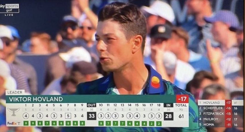 Viktor Hovland delivered the best round of his career at the right time, making birdie on all but two holes on the back nine Sunday for a 9-under 61 to break the course record at Olympia Fields and storm past Scottie Scheffler and Matt Fitzpatrick to win the BMW Championship.