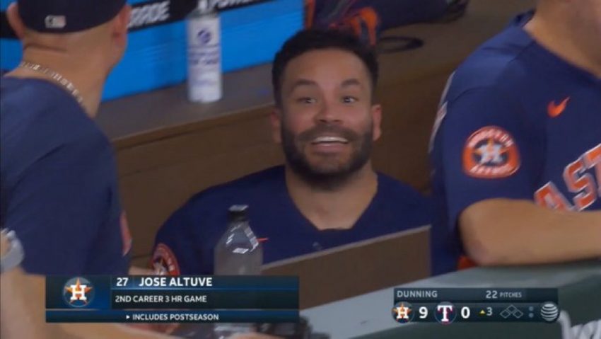 The Houston Astros second baseman Jose Altuve went deep three times in the first three innings of Tuesday’s 14-1 win over the division-rival Texas Rangers.