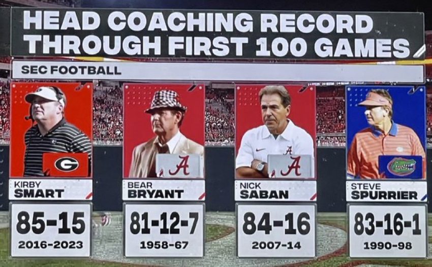 Georgia coach Kirby Smart passes Nick Saban, sets SEC record for most wins through first 100 games Posted on September 24, 2023September 24, 2023 by Santiago LeonSmart continues to build a solid legacy as his team eyes a historic three-peat this season Read More ยปRelatedRelated posts:Kansas, coach Les Miles part waysNCAA alleges 18 Level I violations under ex-coach Jeremy PruittPeyton Bowen flips to Oregon from Notre DameNo. 1 Georgia rallies to beat No. 4 Ohio State 42-41 in CFB Playoff Semifinal