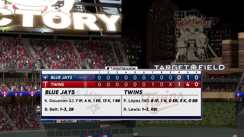 Minnesota’s victory is its first in the postseason since Game 1 of the 2004 ALDS against the New York Yankees.