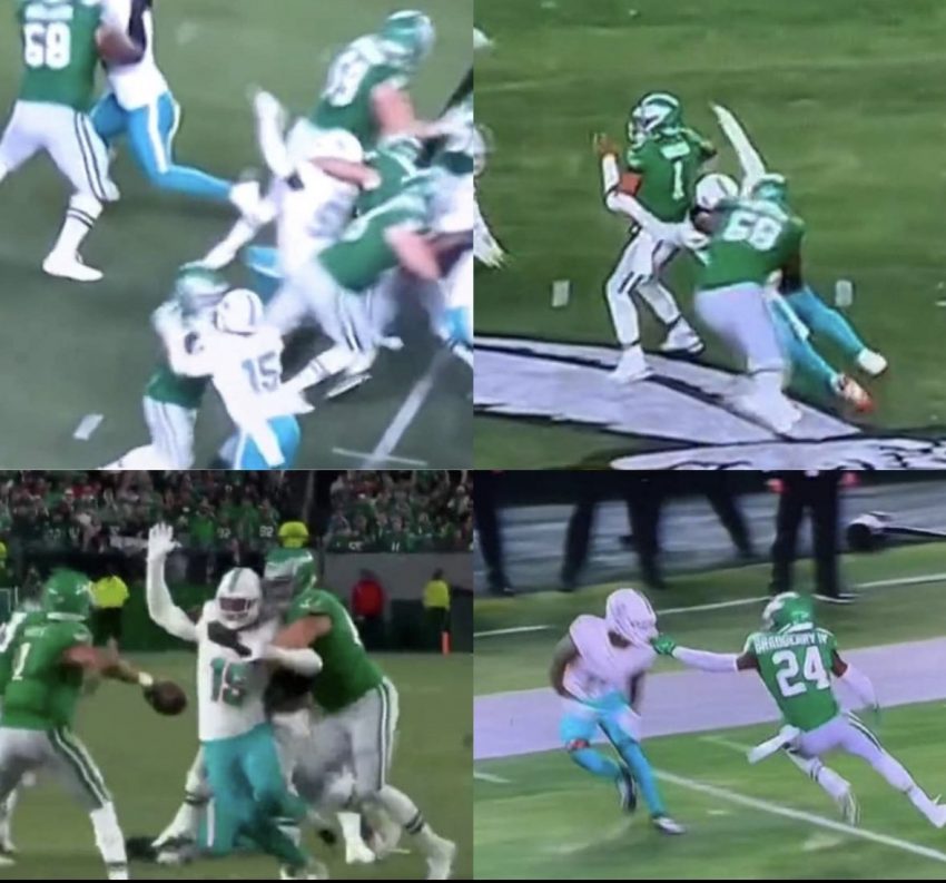 But the big play that sealed the win came in the fourth quarter from the cornerback nicknamed “Big Play” Slay. Trailing 24-17 in the fourth, Tagovailoa went deep on a pass intended for Raheem Mostert that was picked by Darius Slay near the goal line and returned 16 yards.
