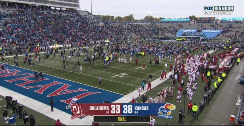 Devin Neal ran for 112 yards and the go-ahead score with 55 seconds left, the Sooners’ Dillon Gabriel threw incomplete to the end zone on the final play of the game, and Kansas fans — finally relishing a bit of success after watching so many downtrodden teams over the years — were left to storm the field and celebrate one of the biggest wins in school history.