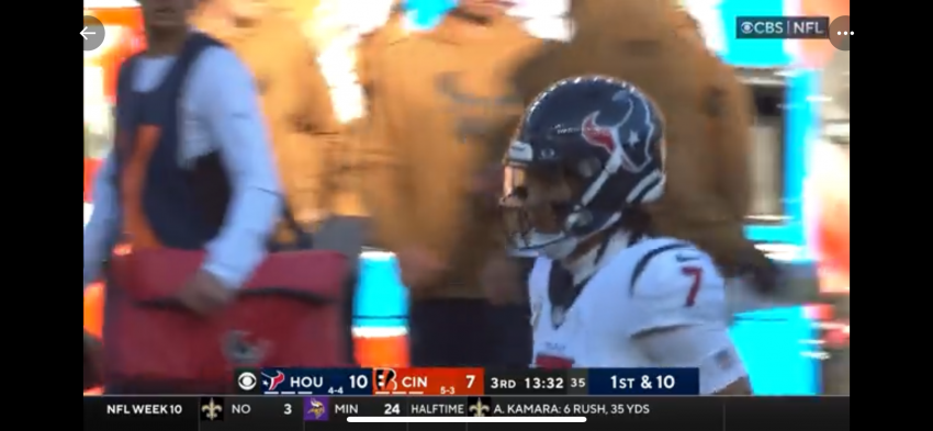 Despite playing without top wide receiver Nico Collins, Stroud finished the day with 23 completions on 39 attempts for 356 yards and one touchdown against one interception. He also added a score on the ground.