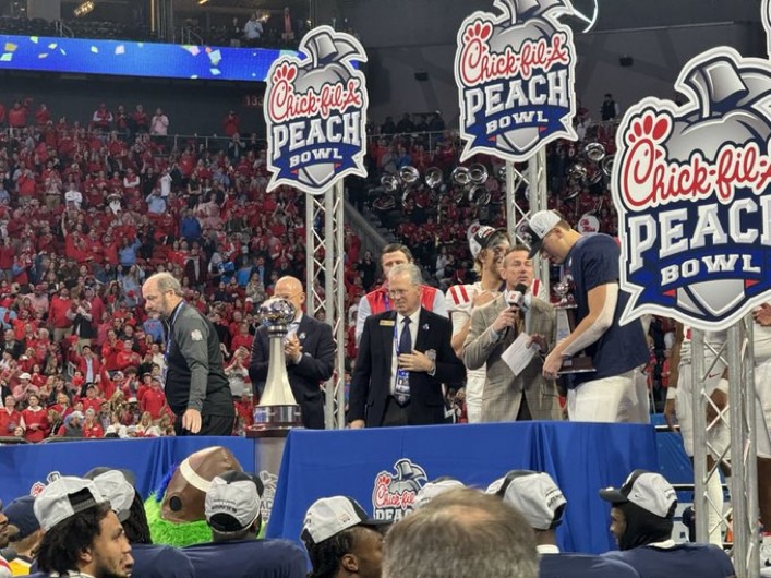 Jaxson Dart passed for 379 yards and three touchdowns, including two to tight end Caden Prieskorn, and ran for a score as No. 11 Mississippi bullied No. 10 Penn State’s proud defense 38-25 in the Peach Bowl on Saturday.