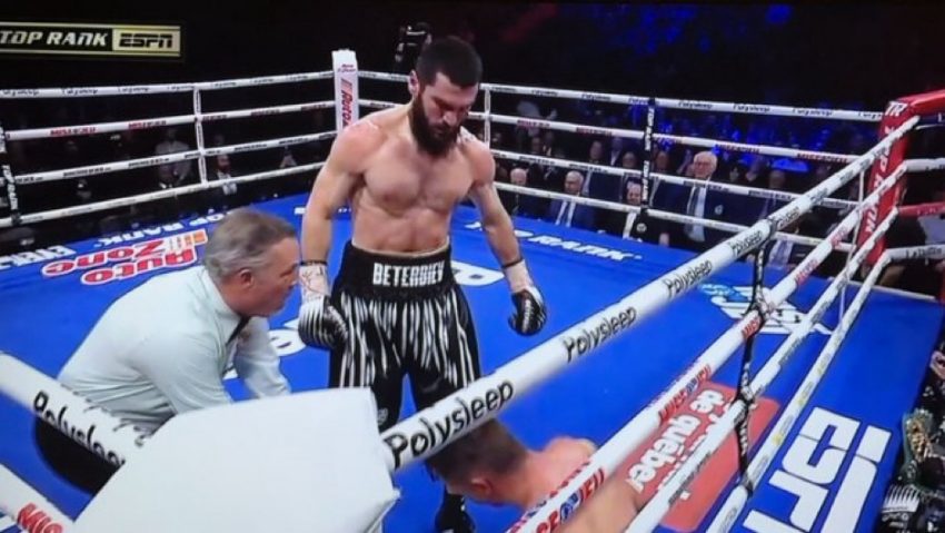 The Russian-Canadian boxer dropped Smith twice in the round. Smith returned to his feet both times, but trainer Buddy McGirt entered the ring after the second knockdown to call off the fight.