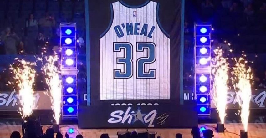 Shaquille O’Neal becomes third NBA star to have jersey retired by three teams as Magic raise No. 32 to rafters