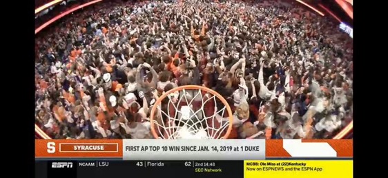 Starling hit a desperation 3-point bank shot to reclaim the Orange lead at 67-65 with under seven minutes to go. Mintz hit a layup, jumper and two foul shots to give the Orange a 73-67 margin, and Starling hit another 3 to give Syracuse a 76-69 lead following a Harrison Ingram jumper with under three to go.
