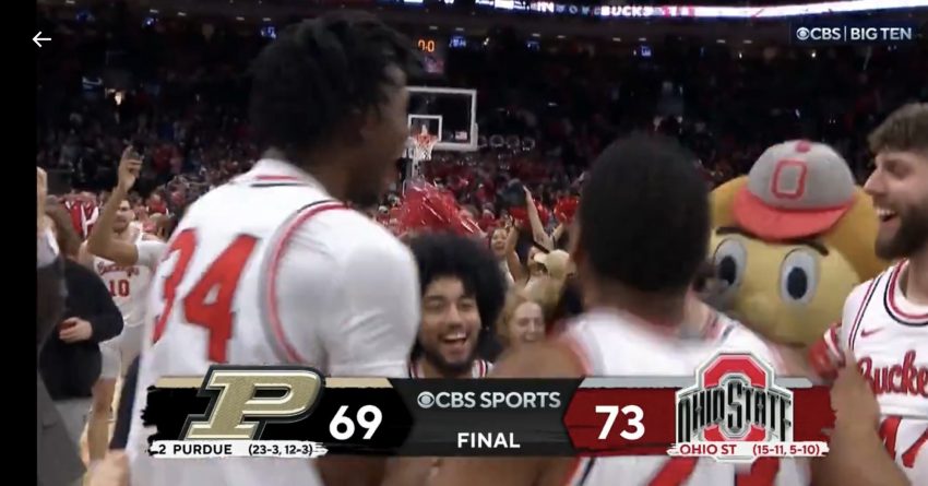 Ohio State stunned No. 2 Purdue on Sunday in its interim coach’s debut, winning 73-69 a day after the NCAA Tournament selection committee picked the Boilermakers as the early favorite to be the No. 1 overall seed during March Madness.