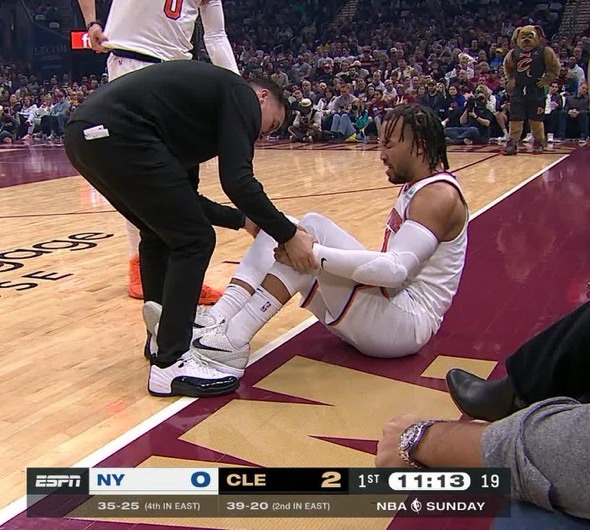 New York Knicks star Jalen Brunson was forced to exit Sunday’s victory against the Cleveland Cavaliers with a sore left knee.