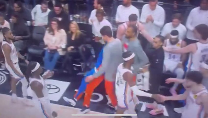 Oklahoma City forward Bismack Biyombo appeared to collapse while standing in front of the Thunder bench during the second quarter of Wednesday night’s game at the Portland Trail Blazers.