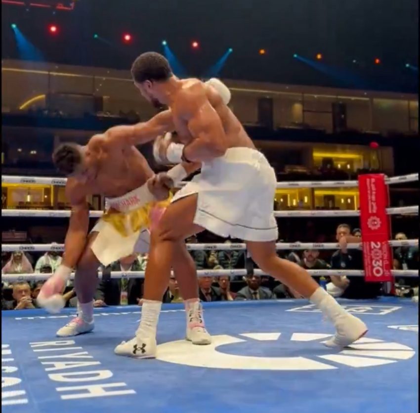 Anthony Joshua knocked out Francis Ngannou with a devastating right hand at the 2:38 mark of the second round in a highly anticipated boxing match Friday in Riyadh, Saudi Arabia.