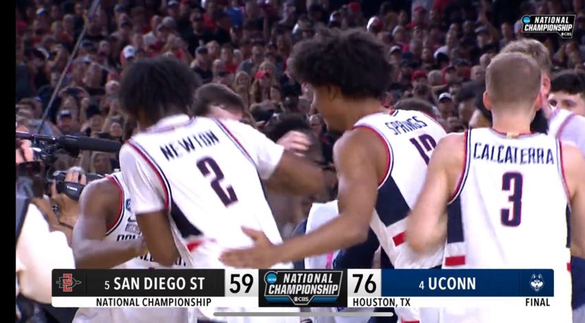 Cam Spencer scored 18 points and Tristen Newton added 17 points and seven rebounds for the Huskies (34-3), who will play the winner of the other East Region semifinal between No. 2 Iowa State and No. 3 Illinois for a spot in the Final Four in Glendale, Arizona.