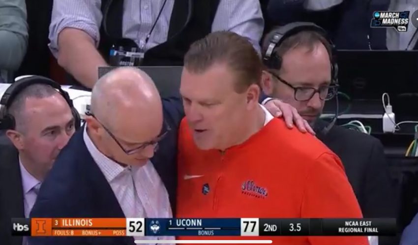 Defending national champion UConn powered its way back into the Final Four behind a 30-0 run led by Donovan Clingan, who finished with 22 points and 10 rebounds as the Huskies crushed Illinois 77-52 on Saturday night.