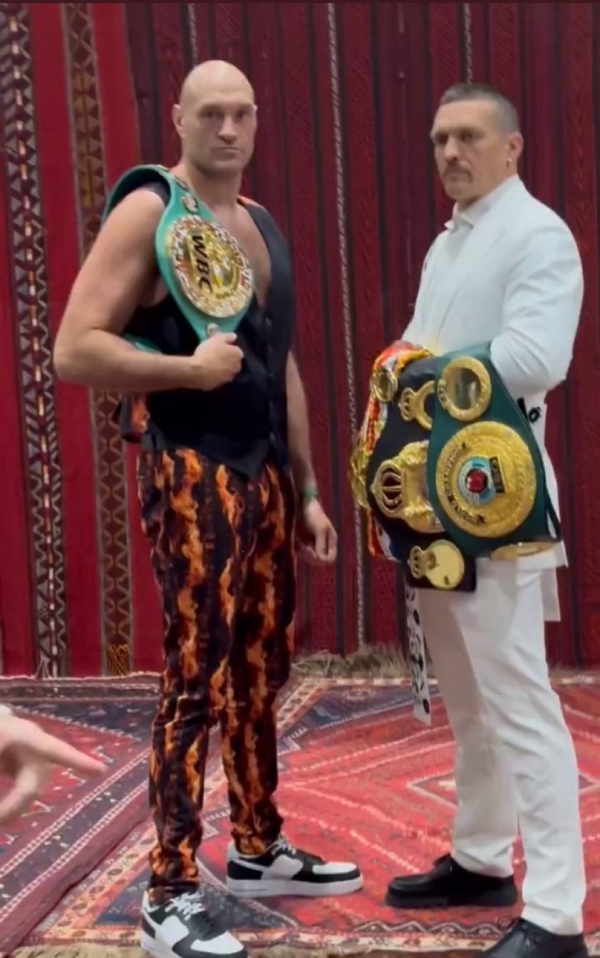 Fury, the WBC heavyweight champion, weighed in at 262 pounds, and Usyk, who holds the WBA, IBF, and WBO belts, tipped the scale at 223.5 pounds. (Michael Buffer mistakenly initially announced Usyk’s weight as 233.5 pounds.)