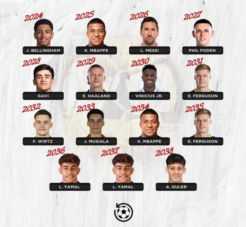 The final prediction for 2038 sees Arda Güler taking the Ballon d’Or. The Turkish midfielder’s vision, passing, and flair have set him apart as one of the most exciting young players to watch.