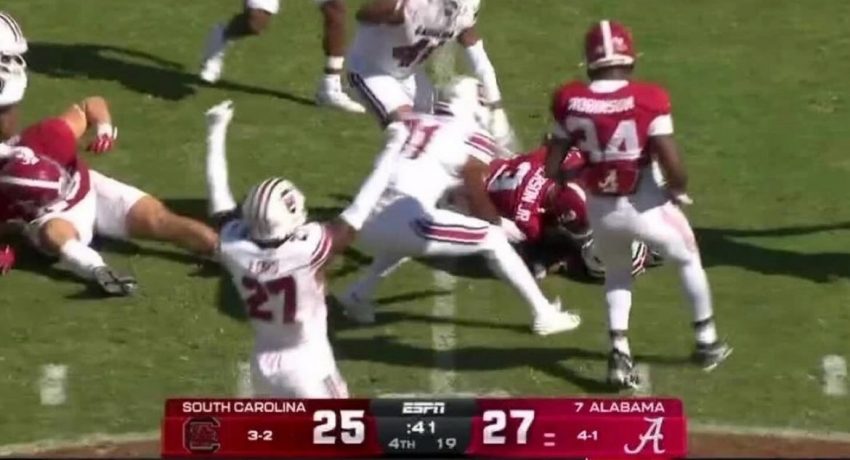 Alabama avoided losing back-to-back games for the first time since 2007 with a narrow 27-25 win over South Carolina on Saturday.