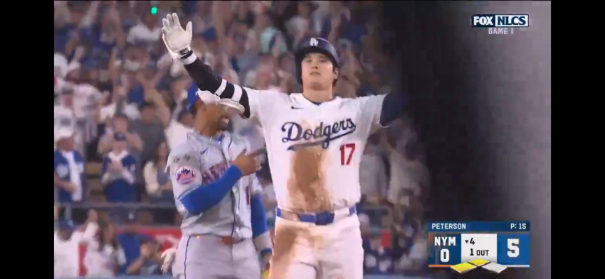 Jack Flaherty combined on a three-hitter and Los Angeles Dodgers pitchers tied the postseason record of 33 consecutive scoreless innings by routing the New York Mets 9-0 Sunday night in the NL Championship Series opener.