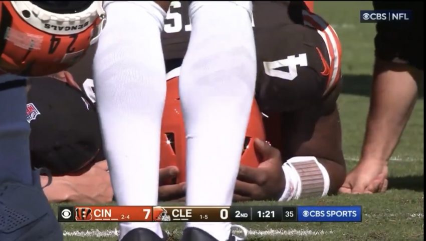 Cleveland Browns quarterback Deshaun Watson went down with a noncontact injury late in the second quarter against the Cincinnati Bengals. The team shortly ruled Watson out for the rest of the game with an Achilles injury.
