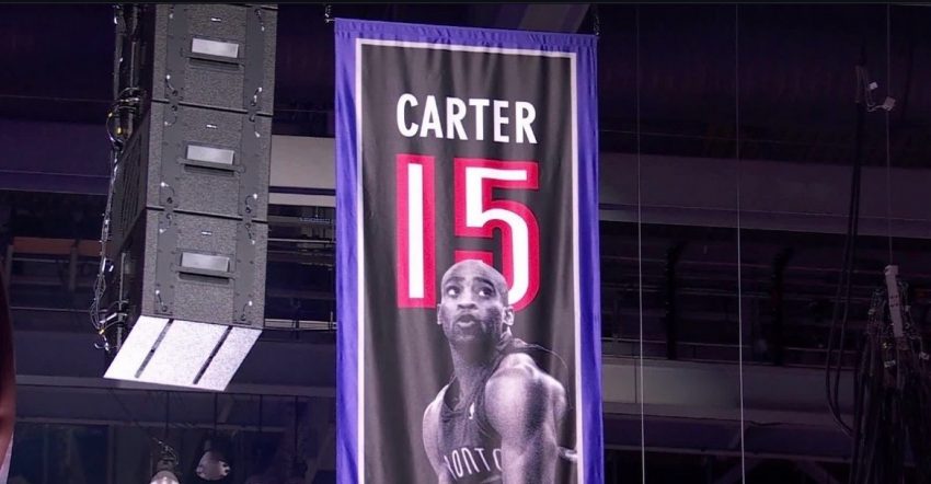 Vince Carter became the first player to have his jersey retired by the Toronto Raptors on Saturday, as the No. 15 was raised to the rafters during halftime of their contest against the Sacramento Kings.