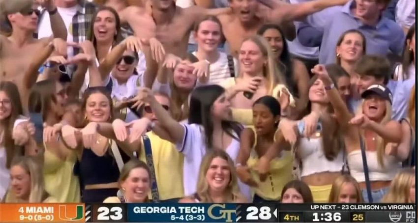 Georgia Tech upset No. 4 Miami 28-23 on Saturday to give the Hurricanes their first loss of the season.