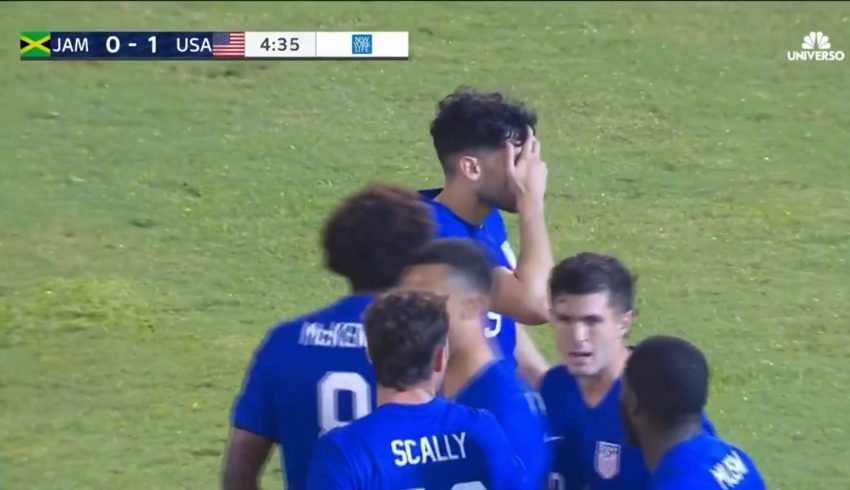 Jamaica finished a man short after Mason Holgate was given his second yellow card for pushing Brandon Vazquez in the 86th minute, 10 minutes after his first for kicking Gianluca Busio.