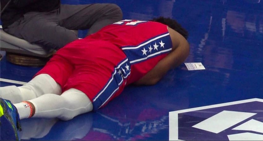 Center Joel Embiid exited the Philadelphia 76ers’ 121-107 loss to the Indiana Pacers early after he was struck in the face.