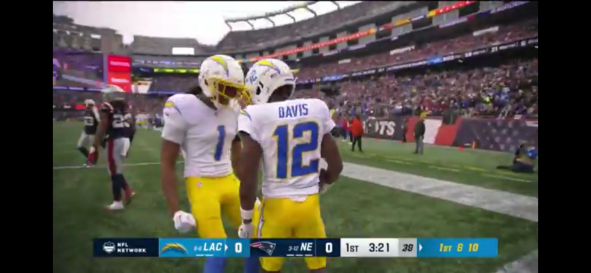 Ladd McConkey had eight catches for 94 yards and pulled in TD throws of 6 and 40 yards. With a 10-yard reception in the second quarter he passed 1,000 yards receiving for the season, making him the third Chargers rookie receiver to reach that milestone.