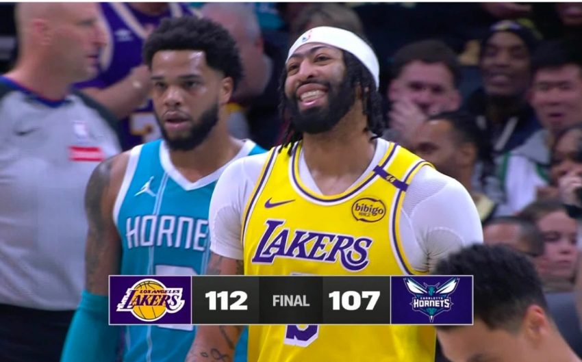 Anthony Davis had 42 points and 23 rebounds, and the Los Angeles Lakers used a huge first quarter from the All-Star center to build a 23-point lead before beating the Charlotte Hornets 112-107 on Monday night for their fourth straight win.